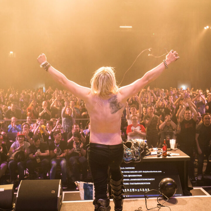 Permanently on tour The Dark Room has headlined stages at Glastonbury, PAX, Download Festival, MCM Comic Con, Utrecht International Comedy Festival 2000 Trees, UK Games Expo and Bluedot Festival, and sold out at Edinburgh Fringe, Soho Theatre and hundreds of theatres around the world.
