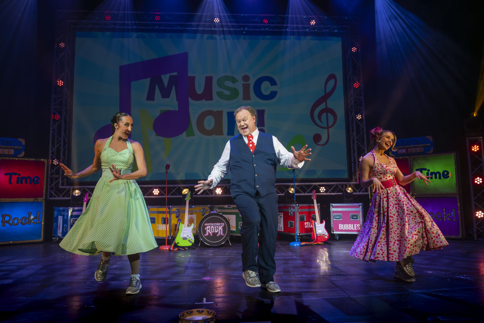 With classic favourites like The Hokey Cokey, Music Man and Hands Up, plus brand-new songs written by Justin and his team, Justin Live – Justin Time to Rock! is a high-energy, feel-good family show guaranteed to get everyone dancing in their seats and leaving with a smile on their face!
