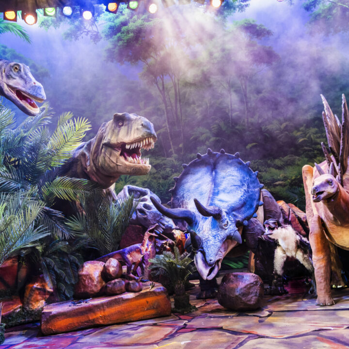 We’ll go on a pre-historic journey together to the Triassic, Jurassic and Cretaceous periods and watch the life-like dinosaurs come alive right on stage!